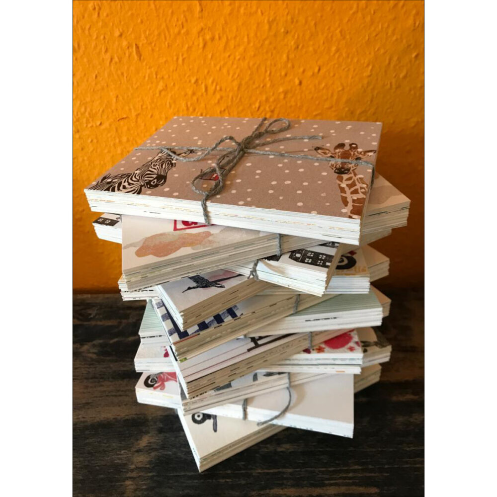 Ein Set beinhaltet 20 unterschiedliche Postkarten aus allen Kategorien. Sie haben zum Teil kleine Druckfehler wie Punkte, Farbveränderungen oder Gestaltungsfehler, einige sind aus früheren Druckserien und haben deshalb andere Papiere wie Recyclingpapier oder 300g/450g Baumwollpapier oder die Ecken sind nicht mehr so schön. Alle Karten kann man immer noch sehr gut gebrauchen, ich kann sie aber wegen den kleinen Mankos oder anderen Papierqualitäten einfach nicht mehr für 2.- im Onlineshop verkaufen.