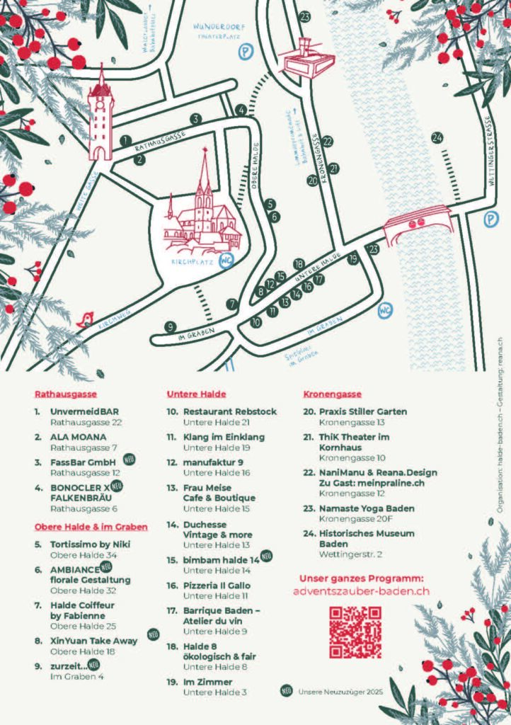 Infos zu den Teilnehmenden Orten findet ihr hier: https://adventszauber-baden.ch.