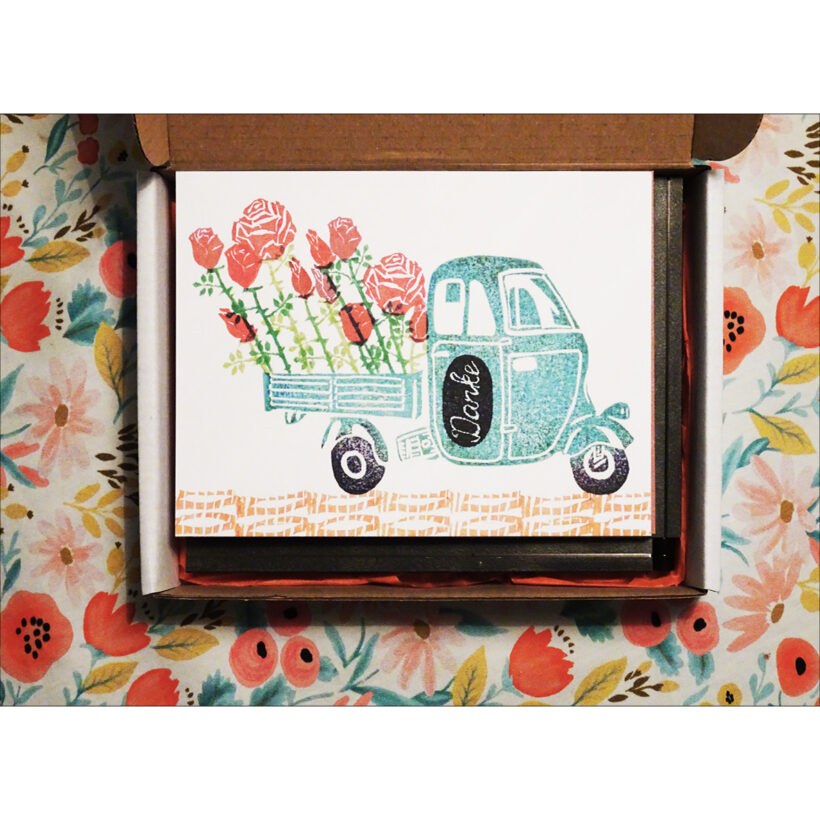 Bei jedem Set gibt es zwei gratis Glückchenfüller Postkarten dazu, eine Hoch- und eine im Querformat. Alles wird hübsch verpackt und kommt per Post innert vier Tagen in einer flachen Karton-Schachtel. Es eignet sich daher sehr gut als Geschenk. Falls Sie einen Wunsch betreffend den zwei gratis Karten haben, geben Sie bei der Bestellung im Feld Kommentar Ihre gewünschten zwei Nummern an. Ich lege sonst selber zwei Karten bei.