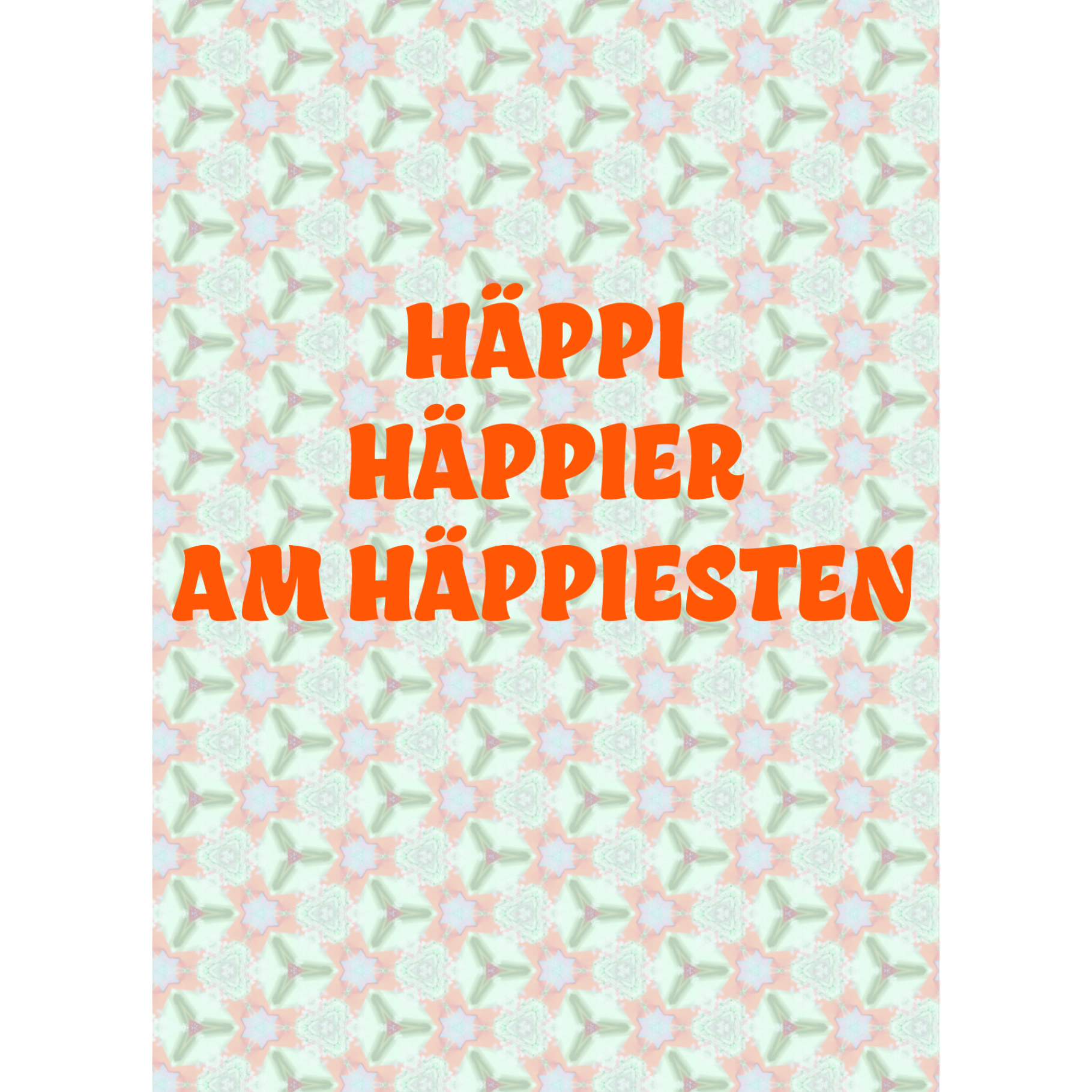 K21_häppi, häppier, am häppiesten | Postkarte mit Typo