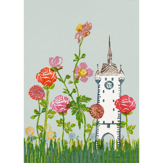 H01_Stadtturm mit Blumen | Postkarte