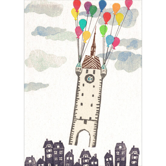 H06_Stadtturm mit Luftballons | Postkarte